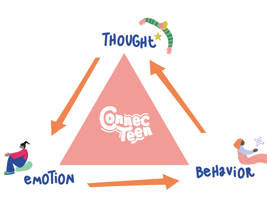 • Hva antar du i den situasjonen? Skriv på den RØDE triaden: Din negative tanke øverst i triaden. Skriv hvilken følelse tanken fremkaller. Skriv hvilken atferd følelsen fremkaller.